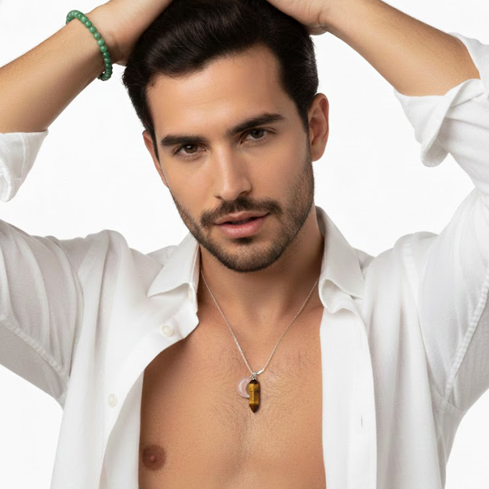 El ojo de tigre activa el chakra solar plexus, potenciando confianza, protección contra energías negativas y claridad en decisiones intuitivas con su péndulo. La pulsera de jade armoniza el chakra corazón y raíz, atrayendo abundancia material, buena fortuna y equilibrio emocional según tradiciones ancestrales. El cuarzo cereza lunar amplifica el amor propio, romances apasionados y manifestación bajo la influencia femenina de la luna.