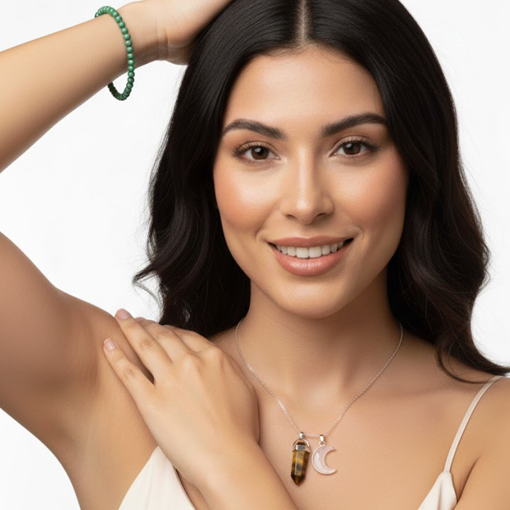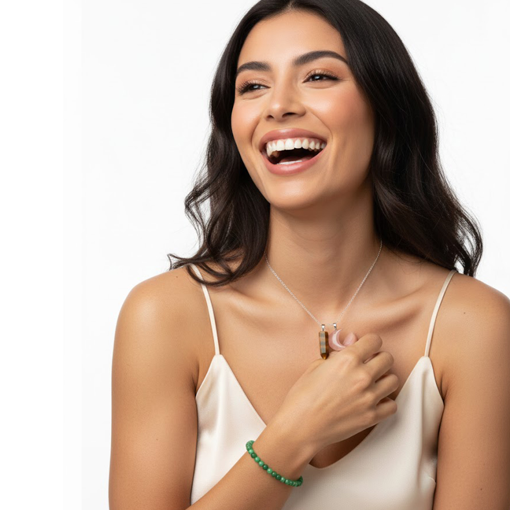 Coloca las tres piezas en un círculo bajo la luz de la luna llena. Sostén el péndulo de ojo de tigre y pregunta por guía en amor/abundancia; pasa la pulsera de jade por humo de palo santo; medita con el dije de cuarzo cereza visualizando deseos. Repite afirmación: «Amor y abundancia en luz lunar». Úsalos 21 días para potenciar vibraciones.